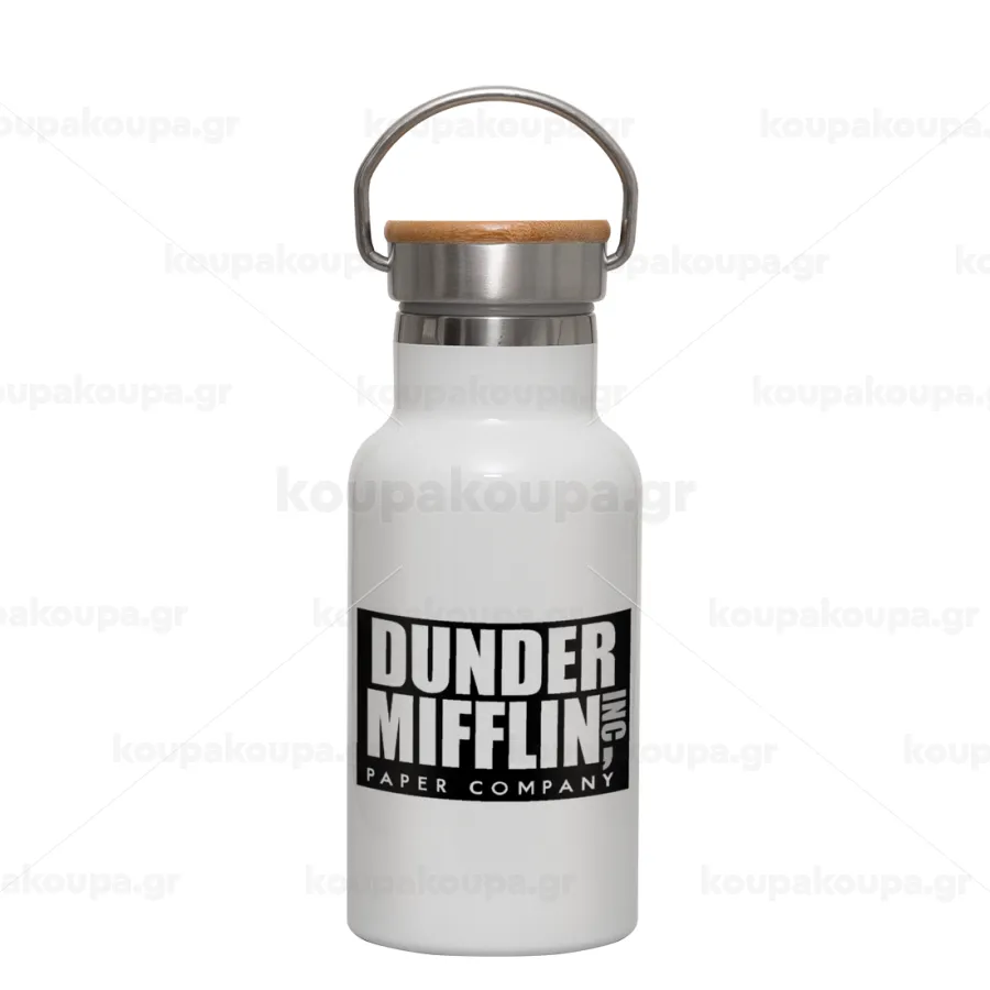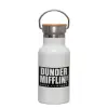 Dunder Mifflin, Inc Paper Company, Μεταλλικό παγούρι θερμός (Stainless steel) Λευκό με ξύλινο καπακι (bamboo), διπλού τοιχώματος, 350ml