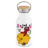 Squid game money pig, Μεταλλικό παγούρι θερμός (Stainless steel) Λευκό με ξύλινο καπακι (bamboo), διπλού τοιχώματος, 350ml