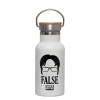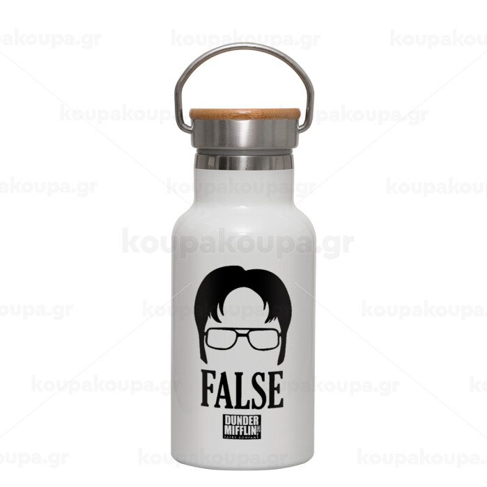 The office Dwight false, Μεταλλικό παγούρι θερμός (Stainless steel) Λευκό με ξύλινο καπακι (bamboo), διπλού τοιχώματος, 350ml