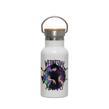 The office Pam Beesly, Μεταλλικό παγούρι θερμός (Stainless steel) Λευκό με ξύλινο καπακι (bamboo), διπλού τοιχώματος, 350ml