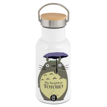Totoro from My Neighbor Totoro, Μεταλλικό παγούρι θερμός (Stainless steel) Λευκό με ξύλινο καπακι (bamboo), διπλού τοιχώματος, 350ml