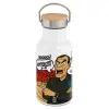 Μπαρτζό, Ποιος? Αυτός!!! 1-0, Μεταλλικό παγούρι θερμός (Stainless steel) Λευκό με ξύλινο καπακι (bamboo), διπλού τοιχώματος, 350ml