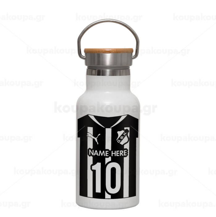 ΟΦΗ εμφάνιση, Μεταλλικό παγούρι θερμός (Stainless steel) Λευκό με ξύλινο καπακι (bamboo), διπλού τοιχώματος, 350ml