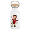 Cristiano Ronaldo, Μεταλλικό παγούρι θερμός (Stainless steel) Λευκό με ξύλινο καπακι (bamboo), διπλού τοιχώματος, 350ml
