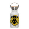FC Α.Ε.Κ., Μεταλλικό παγούρι θερμός (Stainless steel) Λευκό με ξύλινο καπακι (bamboo), διπλού τοιχώματος, 350ml