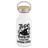 Judo Touch Me And Your First Lesson Is Free, Μεταλλικό παγούρι θερμός (Stainless steel) Λευκό με ξύλινο καπακι (bamboo), διπλού τοιχώματος, 350ml
