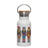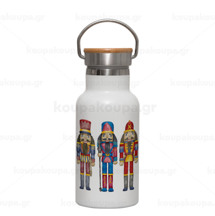 Ο Καρυοθραύστης, Μεταλλικό παγούρι θερμός (Stainless steel) Λευκό με ξύλινο καπακι (bamboo), διπλού τοιχώματος, 350ml