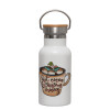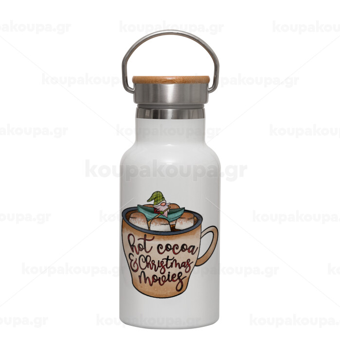 Hot Cocoa And Christmas Movies, Μεταλλικό παγούρι θερμός (Stainless steel) Λευκό με ξύλινο καπακι (bamboo), διπλού τοιχώματος, 350ml