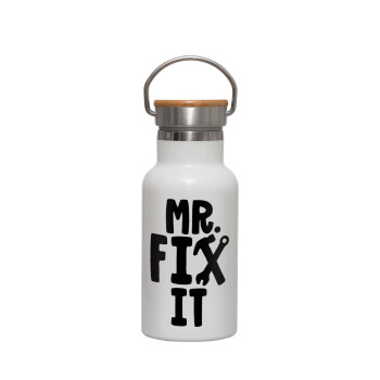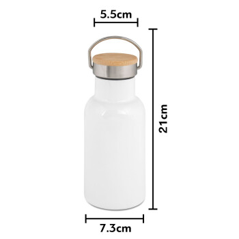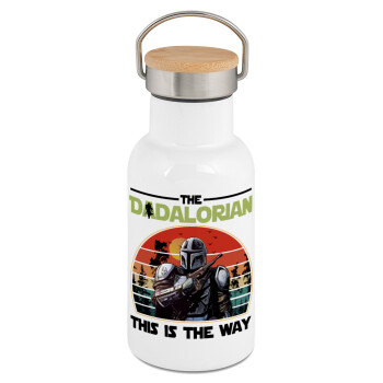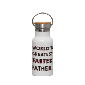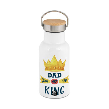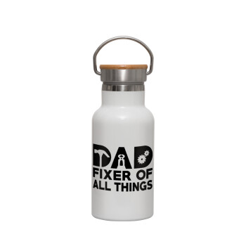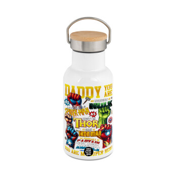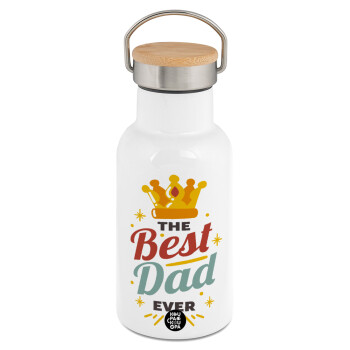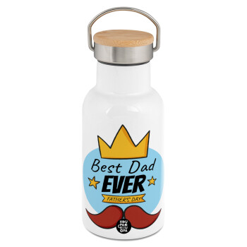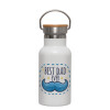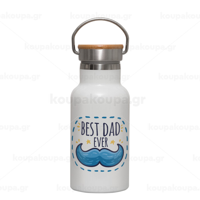 Best dad ever μπλε μουστάκι, Μεταλλικό παγούρι θερμός (Stainless steel) Λευκό με ξύλινο καπακι (bamboo), διπλού τοιχώματος, 350ml