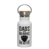 Dad's with beards are better, Μεταλλικό παγούρι θερμός (Stainless steel) Λευκό με ξύλινο καπακι (bamboo), διπλού τοιχώματος, 350ml