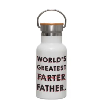World's greatest farter, Μεταλλικό παγούρι θερμός (Stainless steel) Λευκό με ξύλινο καπακι (bamboo), διπλού τοιχώματος, 350ml