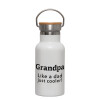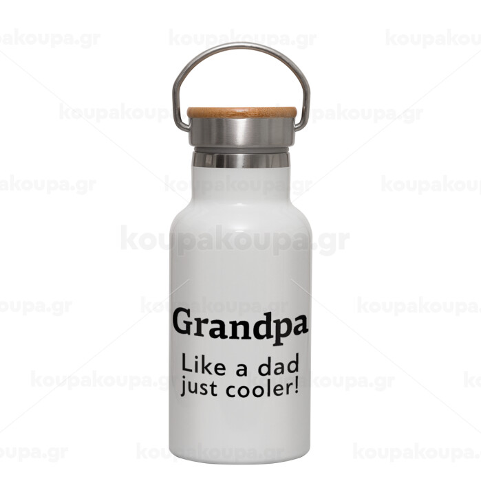Grandpa, like a dad, just cooler, Μεταλλικό παγούρι θερμός (Stainless steel) Λευκό με ξύλινο καπακι (bamboo), διπλού τοιχώματος, 350ml