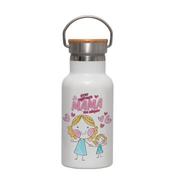 Στην καλύτερη μαμά του κόσμου, comic, Μεταλλικό παγούρι θερμός (Stainless steel) Λευκό με ξύλινο καπακι (bamboo), διπλού τοιχώματος, 350ml