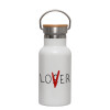 IT Lov(s)er, Μεταλλικό παγούρι θερμός (Stainless steel) Λευκό με ξύλινο καπακι (bamboo), διπλού τοιχώματος, 350ml
