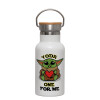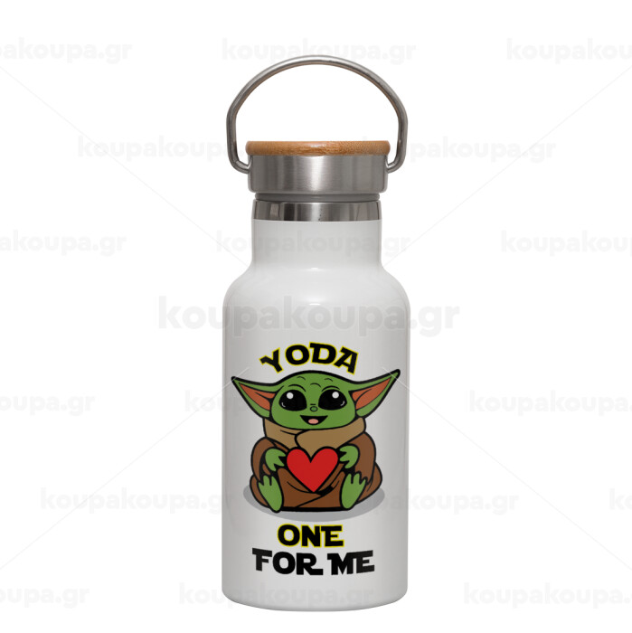 Yoda, one for me , Μεταλλικό παγούρι θερμός (Stainless steel) Λευκό με ξύλινο καπακι (bamboo), διπλού τοιχώματος, 350ml