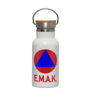Ε.Μ.Α.Κ., Μεταλλικό παγούρι θερμός (Stainless steel) Λευκό με ξύλινο καπακι (bamboo), διπλού τοιχώματος, 350ml