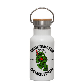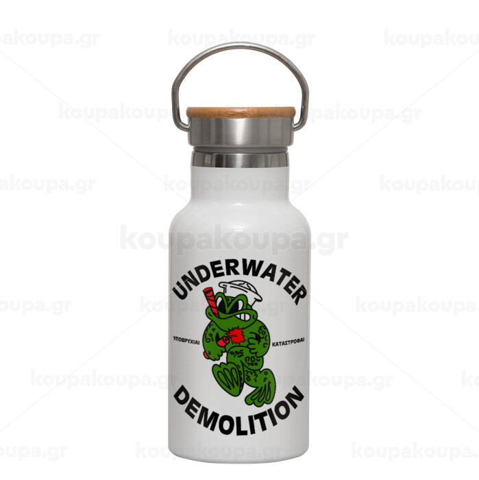 Underwater Demolition, Μεταλλικό παγούρι θερμός (Stainless steel) Λευκό με ξύλινο καπακι (bamboo), διπλού τοιχώματος, 350ml