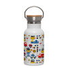 Rescue team cartoon, Μεταλλικό παγούρι θερμός (Stainless steel) Λευκό με ξύλινο καπακι (bamboo), διπλού τοιχώματος, 350ml