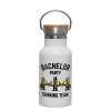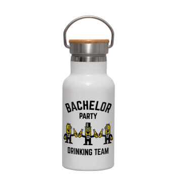 Bachelor Party Drinking Team, Μεταλλικό παγούρι θερμός (Stainless steel) Λευκό με ξύλινο καπακι (bamboo), διπλού τοιχώματος, 350ml