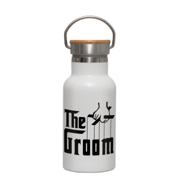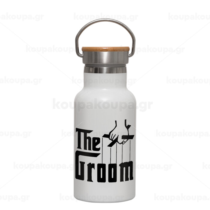 The Groom, Μεταλλικό παγούρι θερμός (Stainless steel) Λευκό με ξύλινο καπακι (bamboo), διπλού τοιχώματος, 350ml
