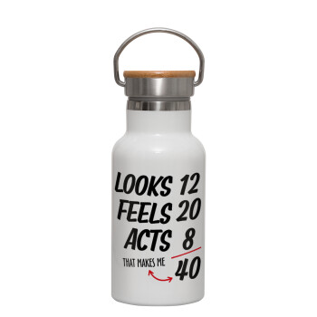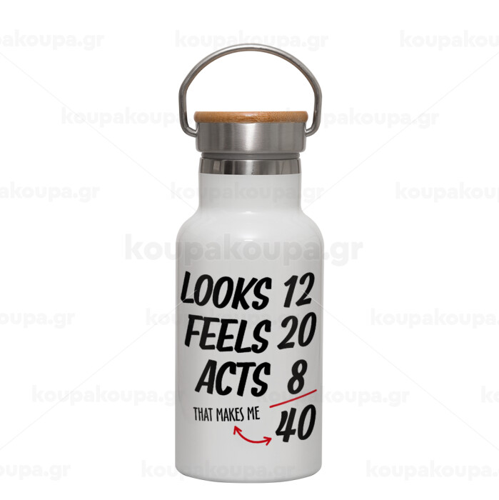 Looks, feels, acts LIKE your AGE, Μεταλλικό παγούρι θερμός (Stainless steel) Λευκό με ξύλινο καπακι (bamboo), διπλού τοιχώματος, 350ml