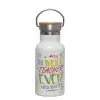 The best teacher ever!, Μεταλλικό παγούρι θερμός (Stainless steel) Λευκό με ξύλινο καπακι (bamboo), διπλού τοιχώματος, 350ml