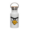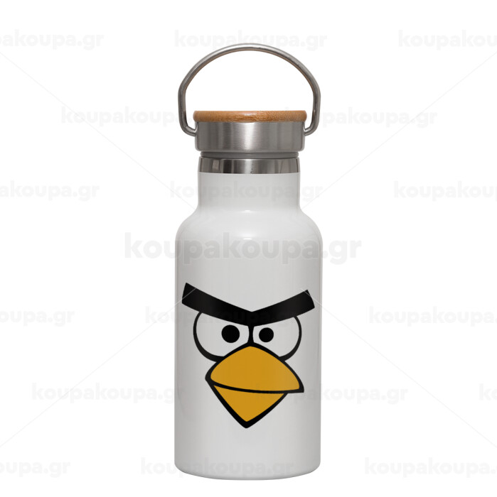 Angry birds eyes, Μεταλλικό παγούρι θερμός (Stainless steel) Λευκό με ξύλινο καπακι (bamboo), διπλού τοιχώματος, 350ml