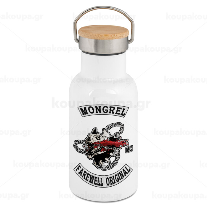 Day's Gone, mongrel farewell original, Μεταλλικό παγούρι θερμός (Stainless steel) Λευκό με ξύλινο καπακι (bamboo), διπλού τοιχώματος, 350ml
