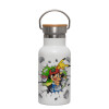 Pokemon brick, Μεταλλικό παγούρι θερμός (Stainless steel) Λευκό με ξύλινο καπακι (bamboo), διπλού τοιχώματος, 350ml