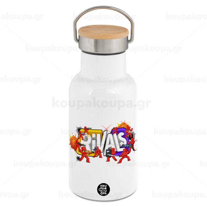 Roblox Rivals, Μεταλλικό παγούρι θερμός (Stainless steel) Λευκό με ξύλινο καπακι (bamboo), διπλού τοιχώματος, 350ml
