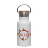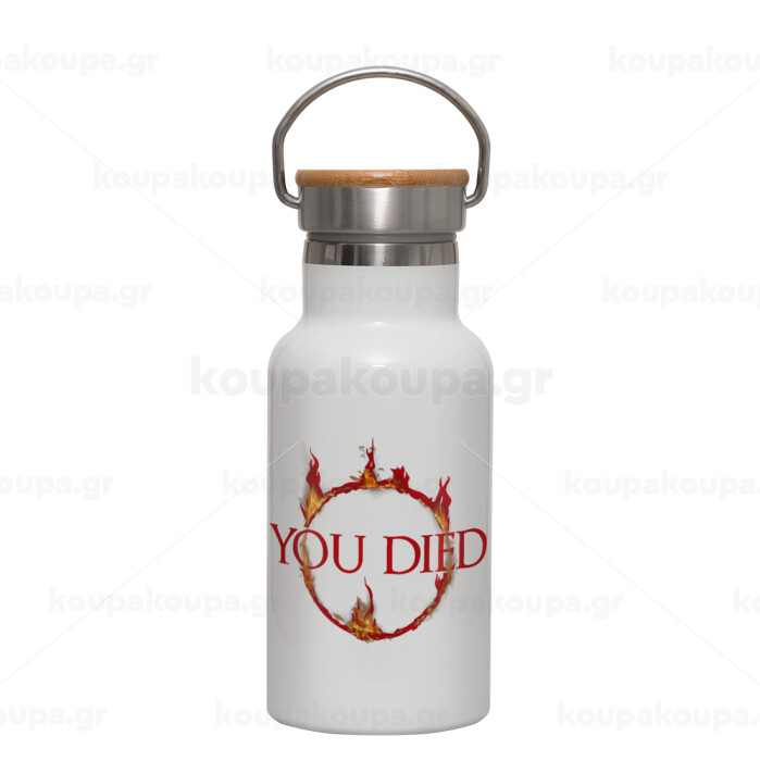 You Died | Dark Souls, Μεταλλικό παγούρι θερμός (Stainless steel) Λευκό με ξύλινο καπακι (bamboo), διπλού τοιχώματος, 350ml