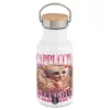 BALLERINA CAPUCHINA FUNK, Μεταλλικό παγούρι θερμός (Stainless steel) Λευκό με ξύλινο καπακι (bamboo), διπλού τοιχώματος, 350ml