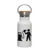 Fuel crisis, Μεταλλικό παγούρι θερμός (Stainless steel) Λευκό με ξύλινο καπακι (bamboo), διπλού τοιχώματος, 350ml