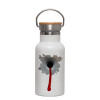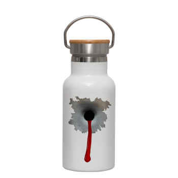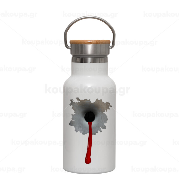 Bullet holes, Μεταλλικό παγούρι θερμός (Stainless steel) Λευκό με ξύλινο καπακι (bamboo), διπλού τοιχώματος, 350ml