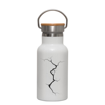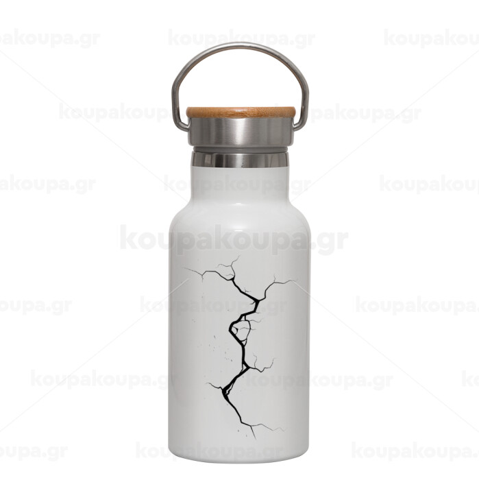 Cracked, Μεταλλικό παγούρι θερμός (Stainless steel) Λευκό με ξύλινο καπακι (bamboo), διπλού τοιχώματος, 350ml