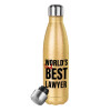 2nd, World Best Lawyer , Μεταλλικό παγούρι θερμός Glitter χρυσό (Stainless steel), διπλού τοιχώματος, 500ml