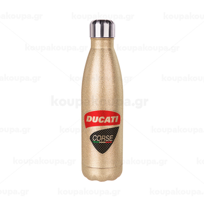 Ducati, Μεταλλικό παγούρι θερμός Glitter χρυσό (Stainless steel), διπλού τοιχώματος, 500ml