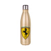 Ferrari, Μεταλλικό παγούρι θερμός Glitter χρυσό (Stainless steel), διπλού τοιχώματος, 500ml