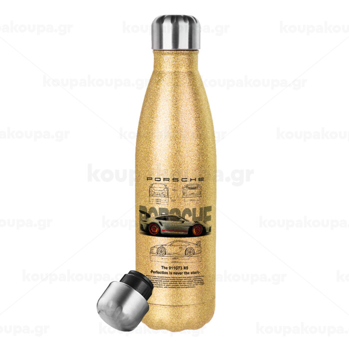 Porsche, Μεταλλικό παγούρι θερμός Glitter χρυσό (Stainless steel), διπλού τοιχώματος, 500ml
