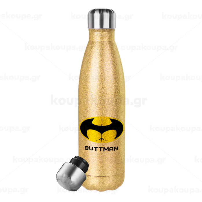 Buttman, Μεταλλικό παγούρι θερμός Glitter χρυσό (Stainless steel), διπλού τοιχώματος, 500ml