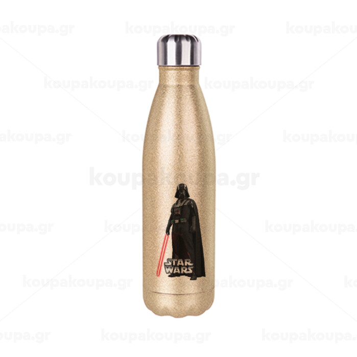 Darth vader, Μεταλλικό παγούρι θερμός Glitter χρυσό (Stainless steel), διπλού τοιχώματος, 500ml