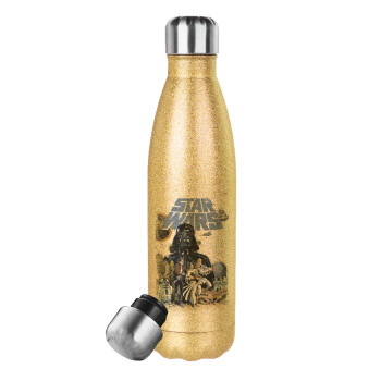 Star Wars, Μεταλλικό παγούρι θερμός Glitter χρυσό (Stainless steel), διπλού τοιχώματος, 500ml