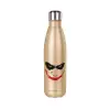 The joker smile, Μεταλλικό παγούρι θερμός Glitter χρυσό (Stainless steel), διπλού τοιχώματος, 500ml