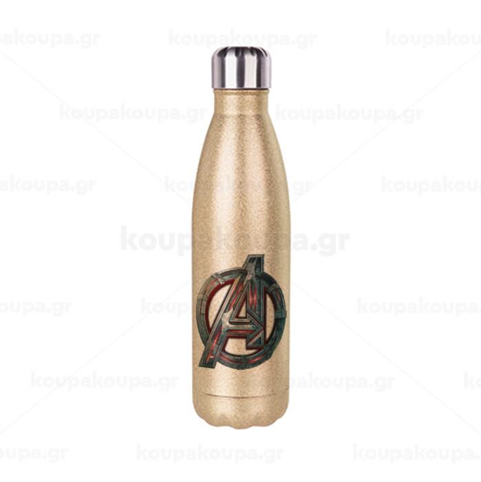 Avengers, Μεταλλικό παγούρι θερμός Glitter χρυσό (Stainless steel), διπλού τοιχώματος, 500ml