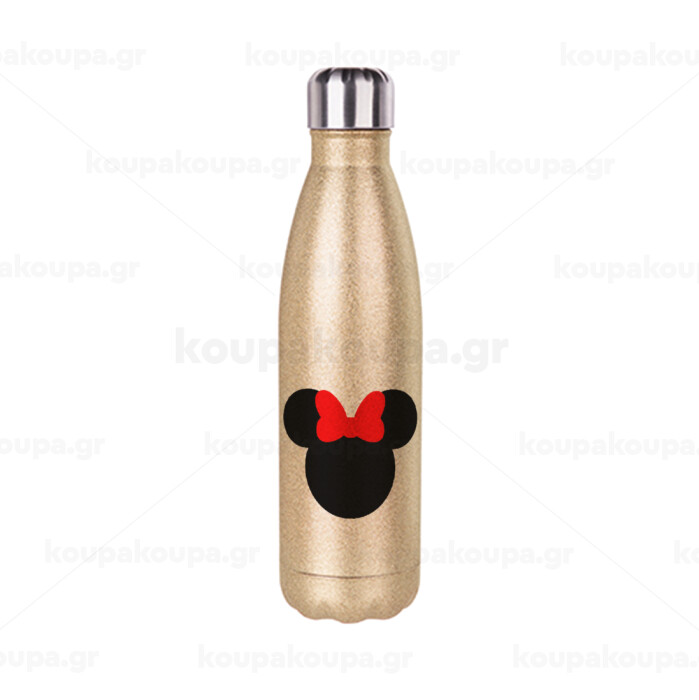 Minnie head, Μεταλλικό παγούρι θερμός Glitter χρυσό (Stainless steel), διπλού τοιχώματος, 500ml