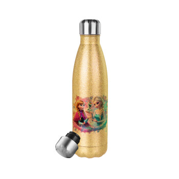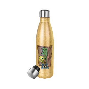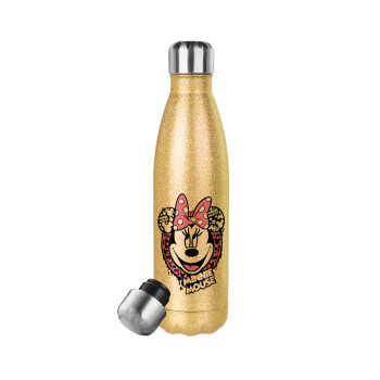 Onepiece logo, Μεταλλικό παγούρι θερμός Glitter χρυσό (Stainless steel), διπλού τοιχώματος, 500ml
