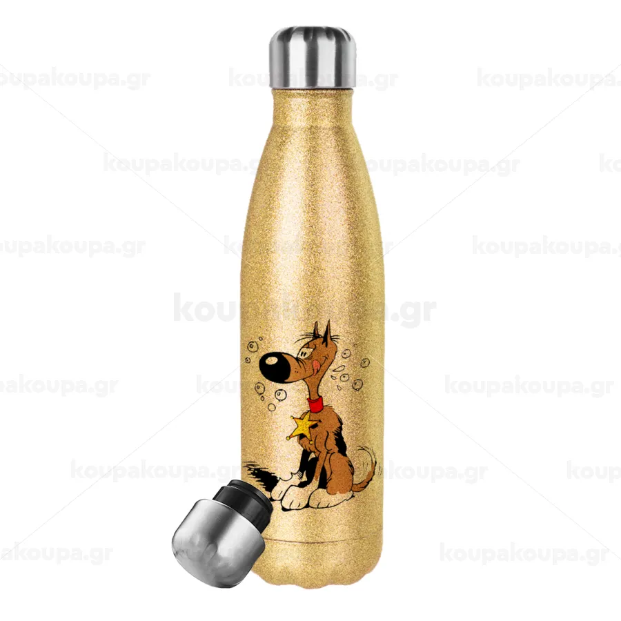 Rantanplan (Ρανταπλάν), Μεταλλικό παγούρι θερμός Glitter χρυσό (Stainless steel), διπλού τοιχώματος, 500ml