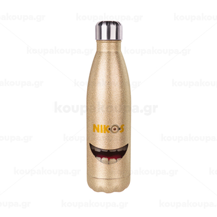The minions, Μεταλλικό παγούρι θερμός Glitter χρυσό (Stainless steel), διπλού τοιχώματος, 500ml