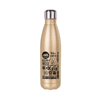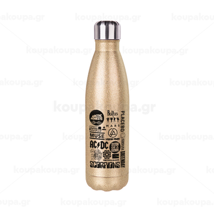 Best Rock Bands Collection, Μεταλλικό παγούρι θερμός Glitter χρυσό (Stainless steel), διπλού τοιχώματος, 500ml