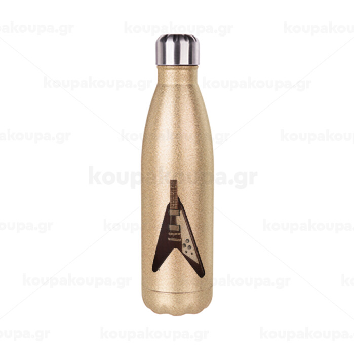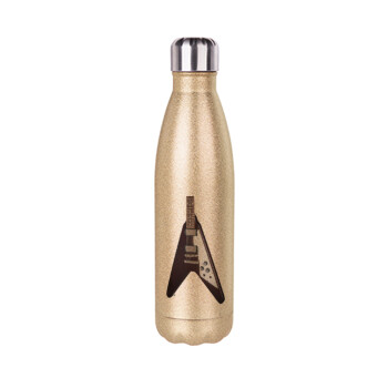 Guitar flying V, Μεταλλικό παγούρι θερμός Glitter χρυσό (Stainless steel), διπλού τοιχώματος, 500ml